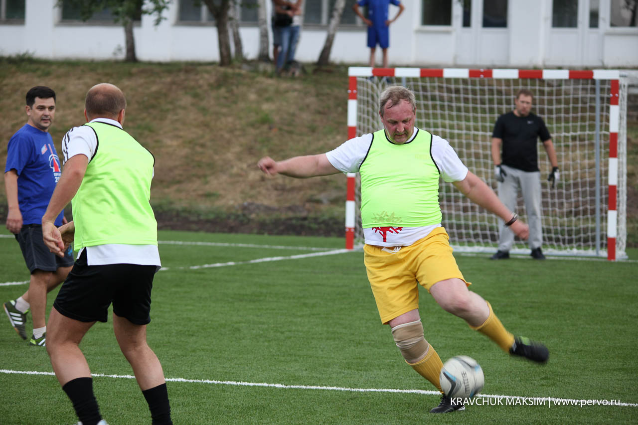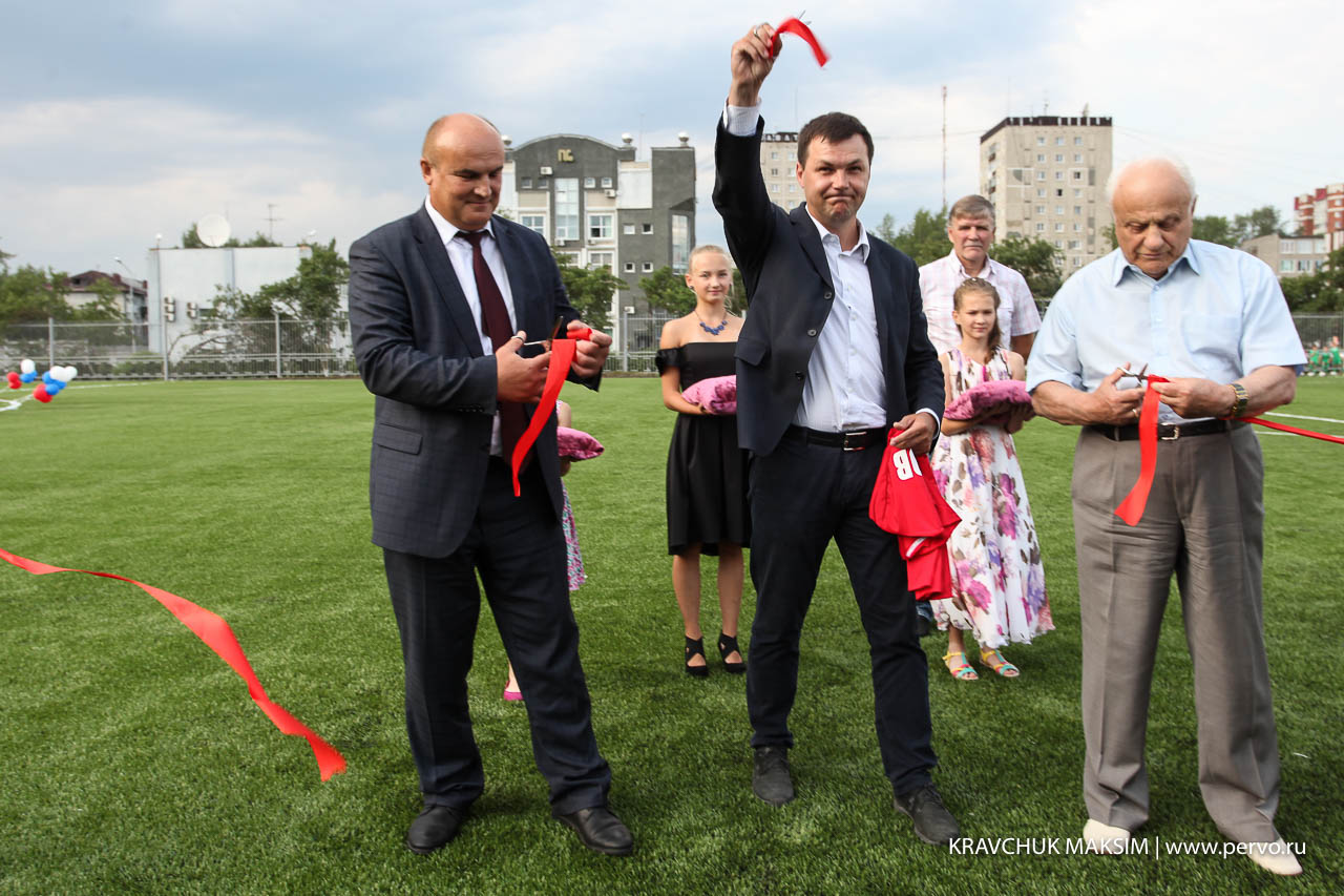 Кстати, Главы Первоуральска, уже после официальной церемонии открытия и традиционного перерезания красной ленты вновь вернулись на поле уже в спортивной форме для того, чтобы поиграть в футбол.