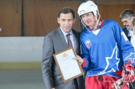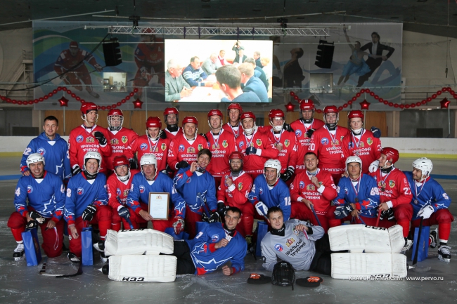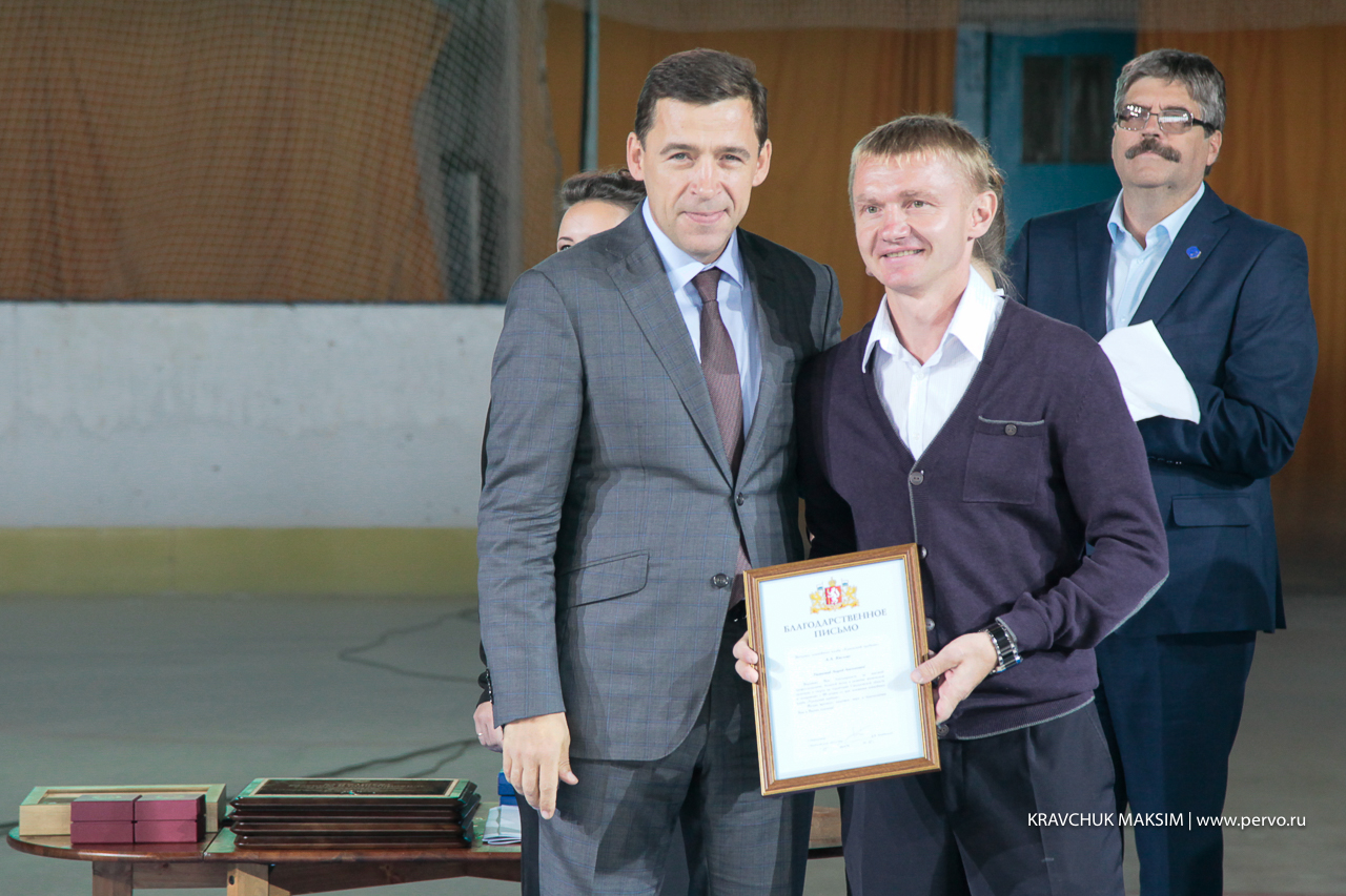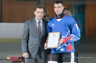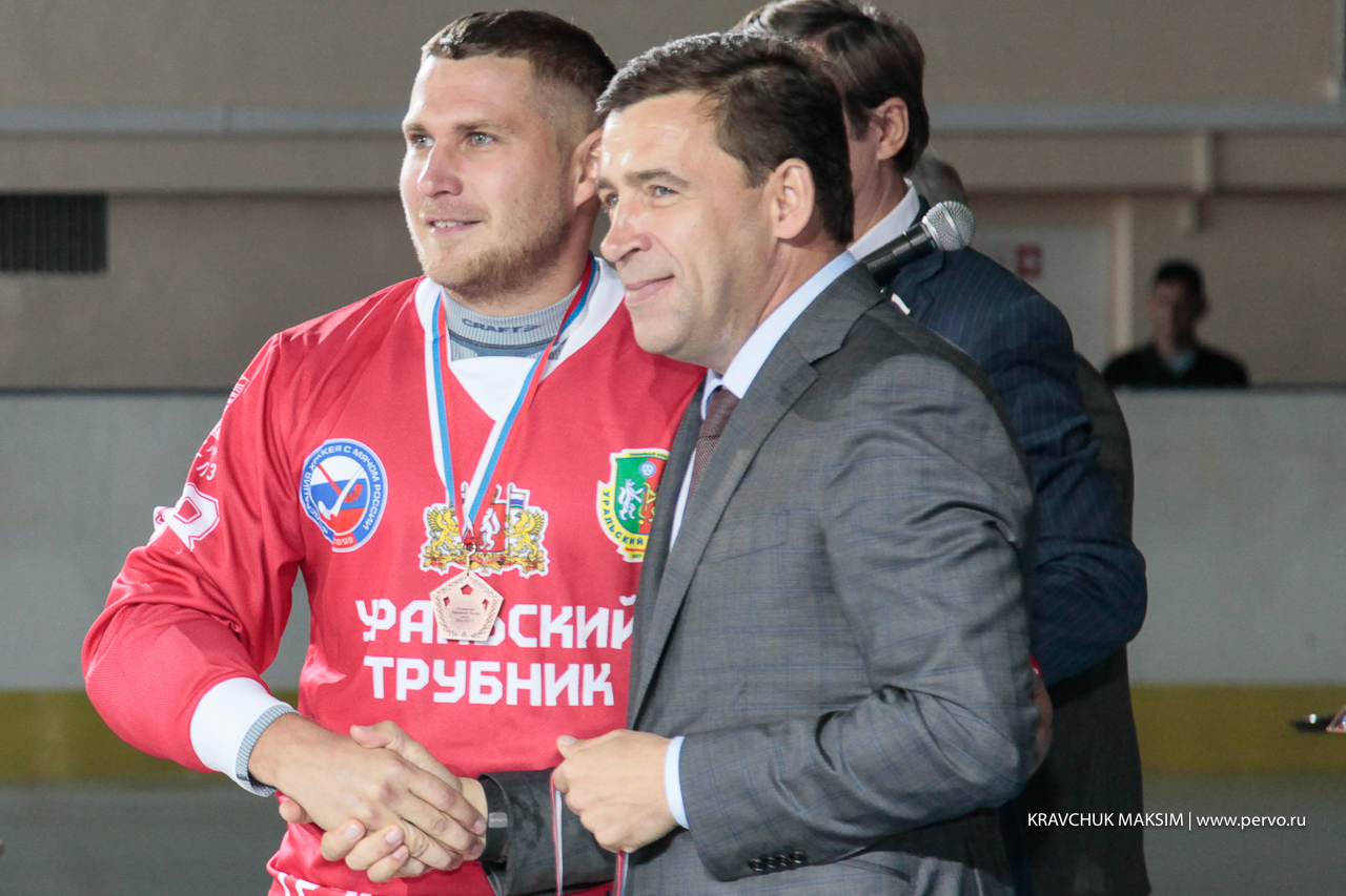 Глава региона наградил почетной грамотой главного тренера клуба «Уральский трубник» Алексея Жеребкова, а также вручил несколько благодарственных писем. Сам глава региона был отмечен почетной грамотой Федерации хоккея с мячом России, которую Евгению Куйвашеву вручил Борис Скрынник.