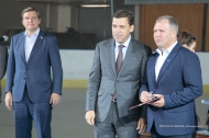 Лидер Свердловской области посетил матч между хоккеистами «Уральского трубника» и команды «Сборная звезд», в состав которой вошли выдающиеся спортсмены, воспитанники Свердловской области.