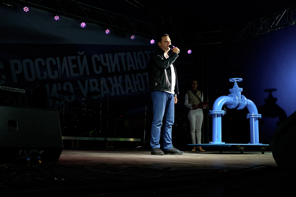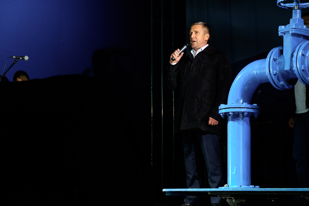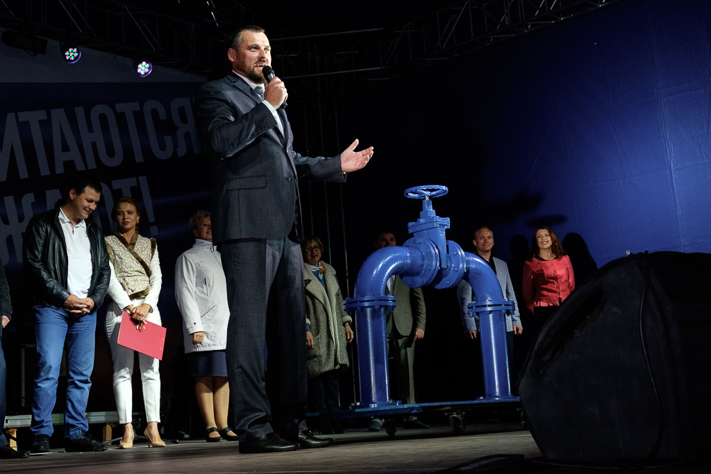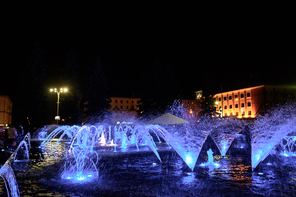Не менее долгожданным событием вечера для горожан стал запуск фонтана. В день юбилея города фонтан «Победа» изменился до неузнаваемости – световые эффекты и разноуровневых струй воды.