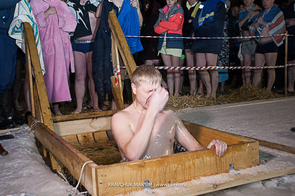 Уже в 23 часа первые верующие начали спускаться к проруби. Порядка двух сотен первоуральцев стали свидетелями таинства обряда освящения воды в купели.