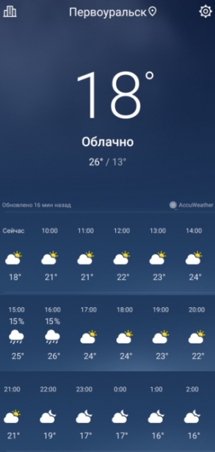 Вот так выглядит прогноз на сегодняшний день. Обратите внимание, осадки все-таки ожидаются, так что захватите на всякий случай из дому зонтики.