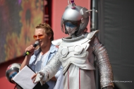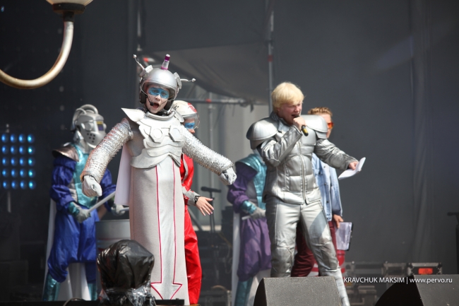 14:20Первоуральск захлестнуло нашествие гигантских человекоподобных роботов. Огромные машины, диковинные создания и ужасные механизмы начали угрожать празднованию Дня металлурга. И только добрые Белые металлурги при помощи маленьких первоуральцев смогут остановить нашествие Черных Полимеров и спасти доброго гигантского робота Трубня. Первая битва прошла в 12:00..финальное сражений пройдет в 17:30 на центральной площади города.