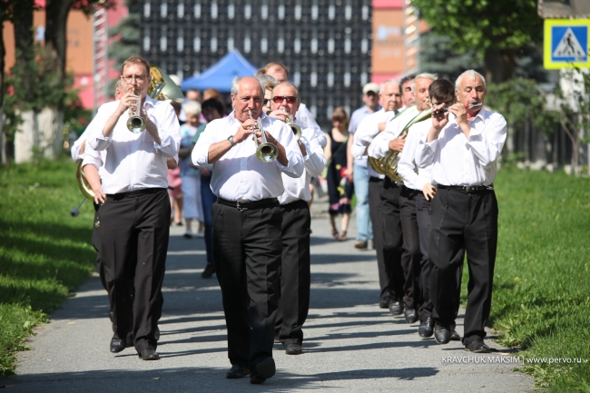 15:51По улицам города прошел Народный духовой «Серебряные трубы». Оркестр существует в Первоуральске с апреля 1932 г. Оркестр создавался по инициативе ПНТЗ и поначалу выступал только на массовых заводских мероприятиях. Музыканты играли песни и марши советских композиторов. Люди, тонко чувствующие музыку - их первый художественный руководитель «Серебряных труб» Владимир Берликов искал по всему городу. Уже через четыре года после создания они первыми из самодеятельных коллективов свердловской области получили звание народного.