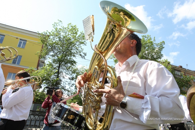 14:09Напоминаем, что в 15:00 по центральным улицам города пройдет дефиле оркестра «Серебряные трубы»