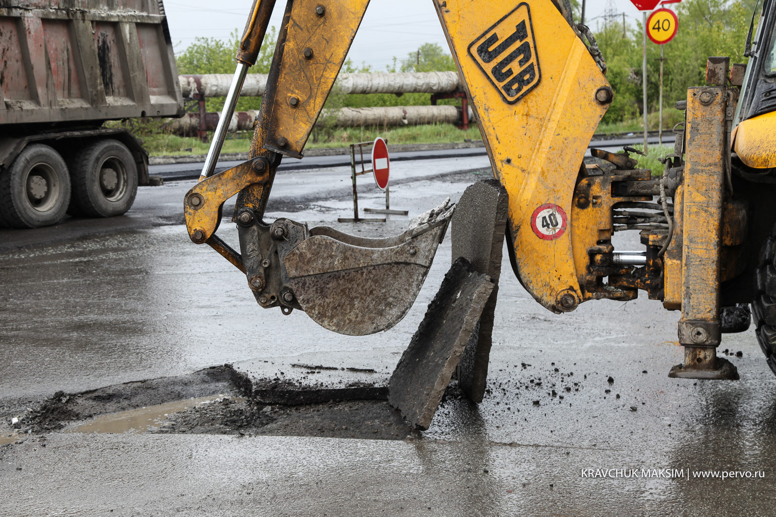 Ремонт идет на участке дороги от железнодорожного переезда до кольцевой развязки. Общий объем работ - 743 погонных метра. По техническому заданию, нижней слой асфальта будет толщиной в 6 сантиметров, верхний слой в 5 сантиметров.