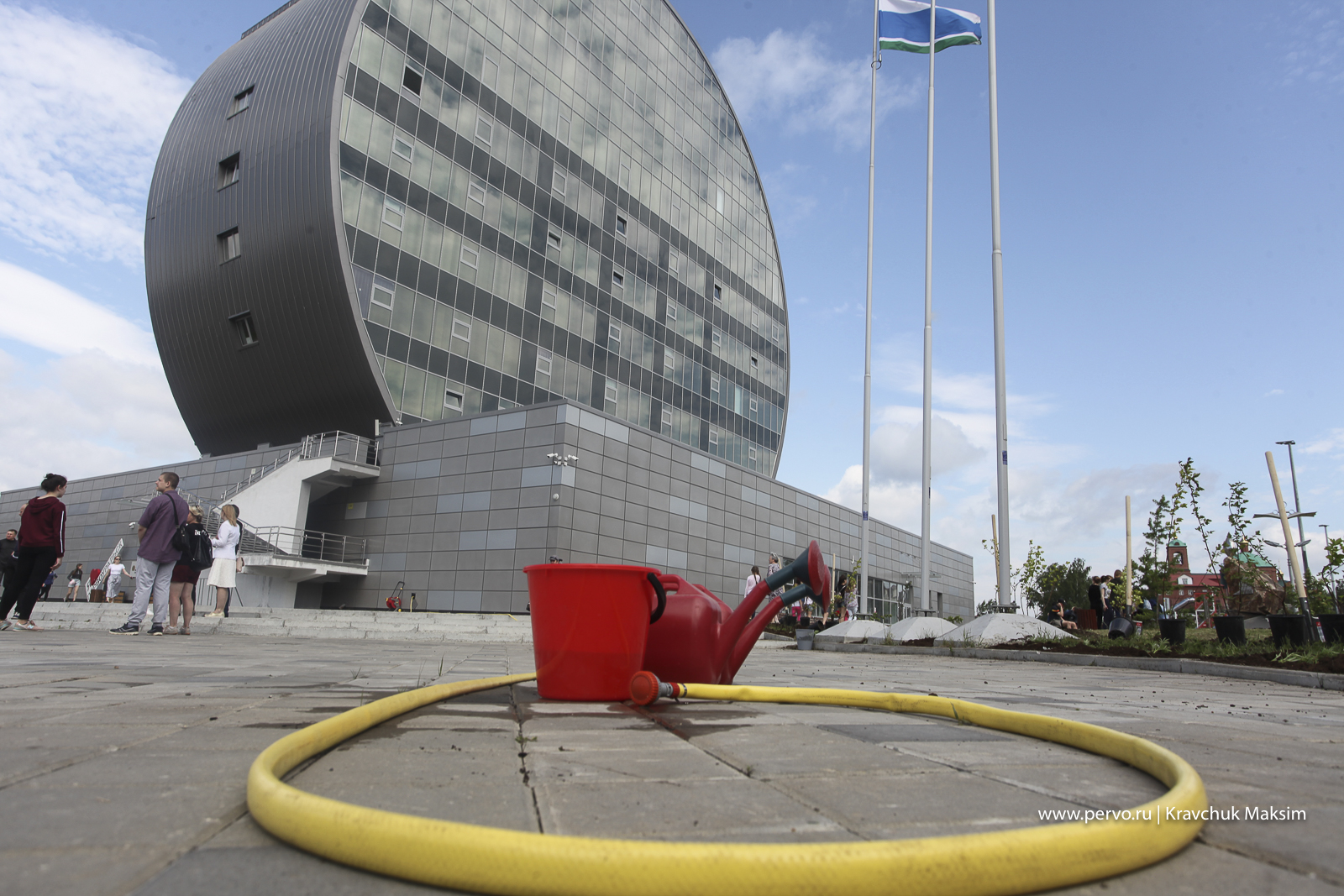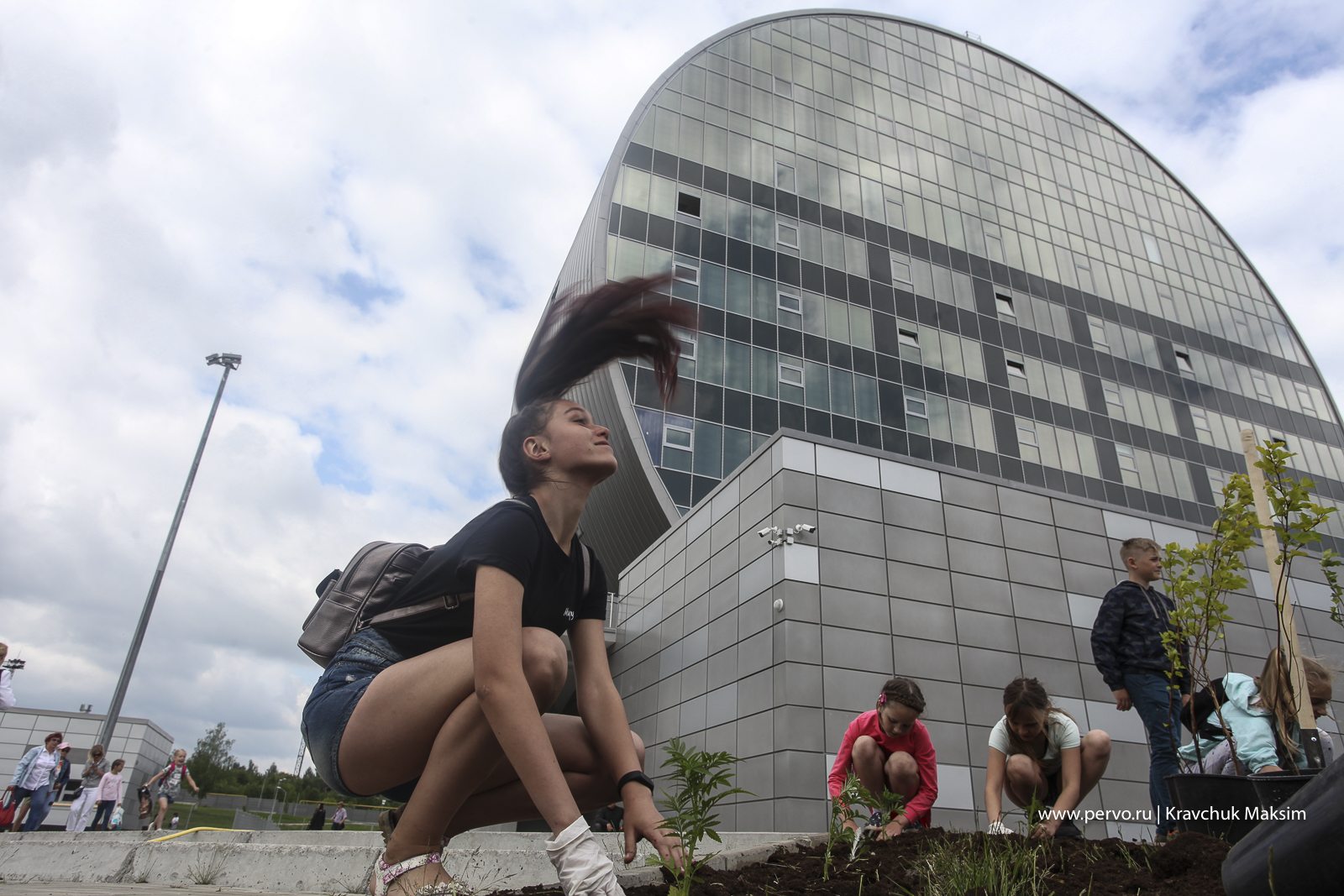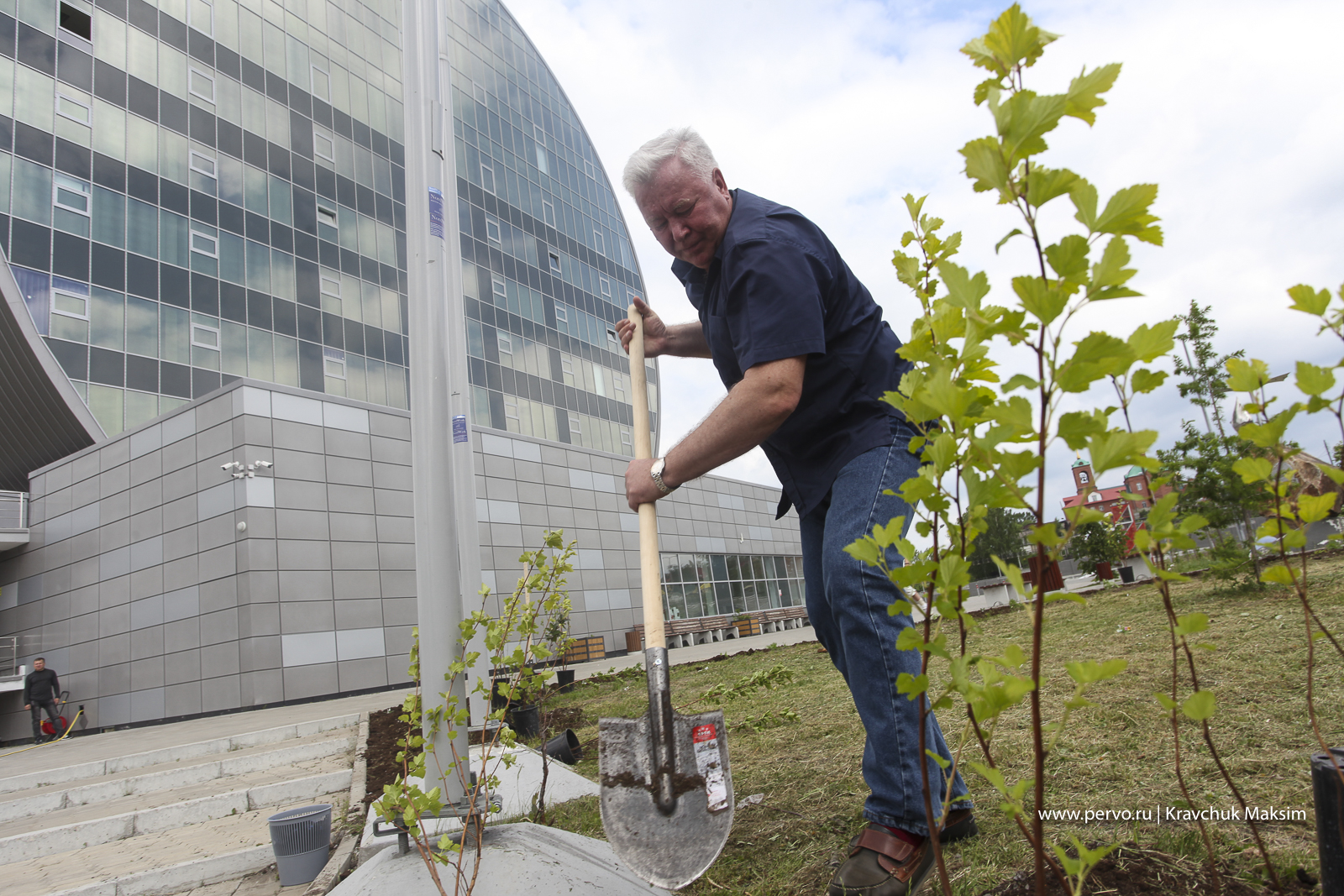 На площадке перед ИКЦ после всех торжественных мероприятий, более 200 первоуральцев приступили к высадке деревьев и цветов. Среди участников акции— горожане, предприниматели, чиновники, дети и активисты «Город Первых».