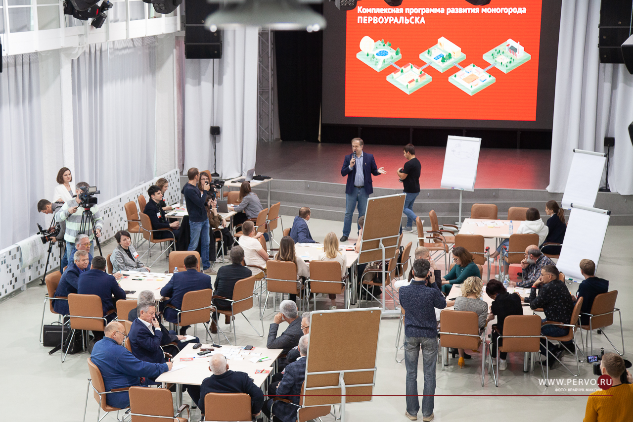 В Инновационном культурном центре разработчики программы рассказали о проведенном комплексном исследовании города. Мнение о том, каким видят Первоуральск в будущем, высказали представители бизнеса, общественных организаций, почетные жители, депутаты и сотрудники городской администрации. Работая в группах, эксперты внесли предложения в формирование нового облика города.