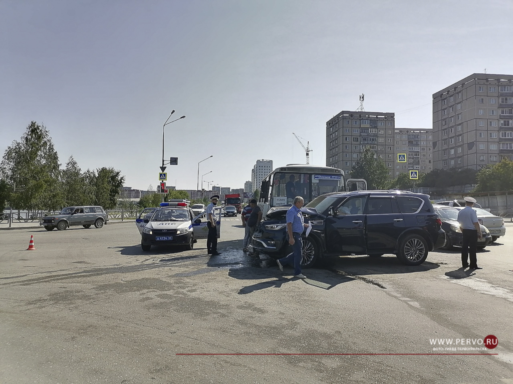 Infiniti, двигаясь со стороны микрорайона Динас по улице Ленина при повороте налево в сторону Шайтанки, не уступил дорогу автобусу