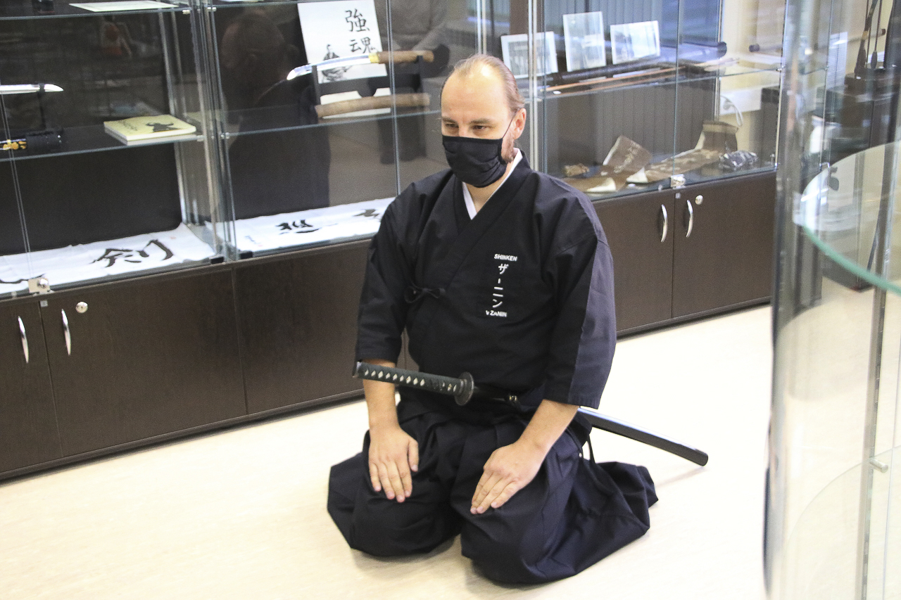 Часть экскурсии была посвящена боевым искусствам Японии, в частности, стрельбе из лука, а также истории появления иайдо, мгновенной атаки катаной. Причем Вадим не только рассказал, но и показал, что это такое. Он отметил, что принципы, которым учит иайдо, вниманию к деталям, концентрации, вполне можно переложить на обычную жизнь.