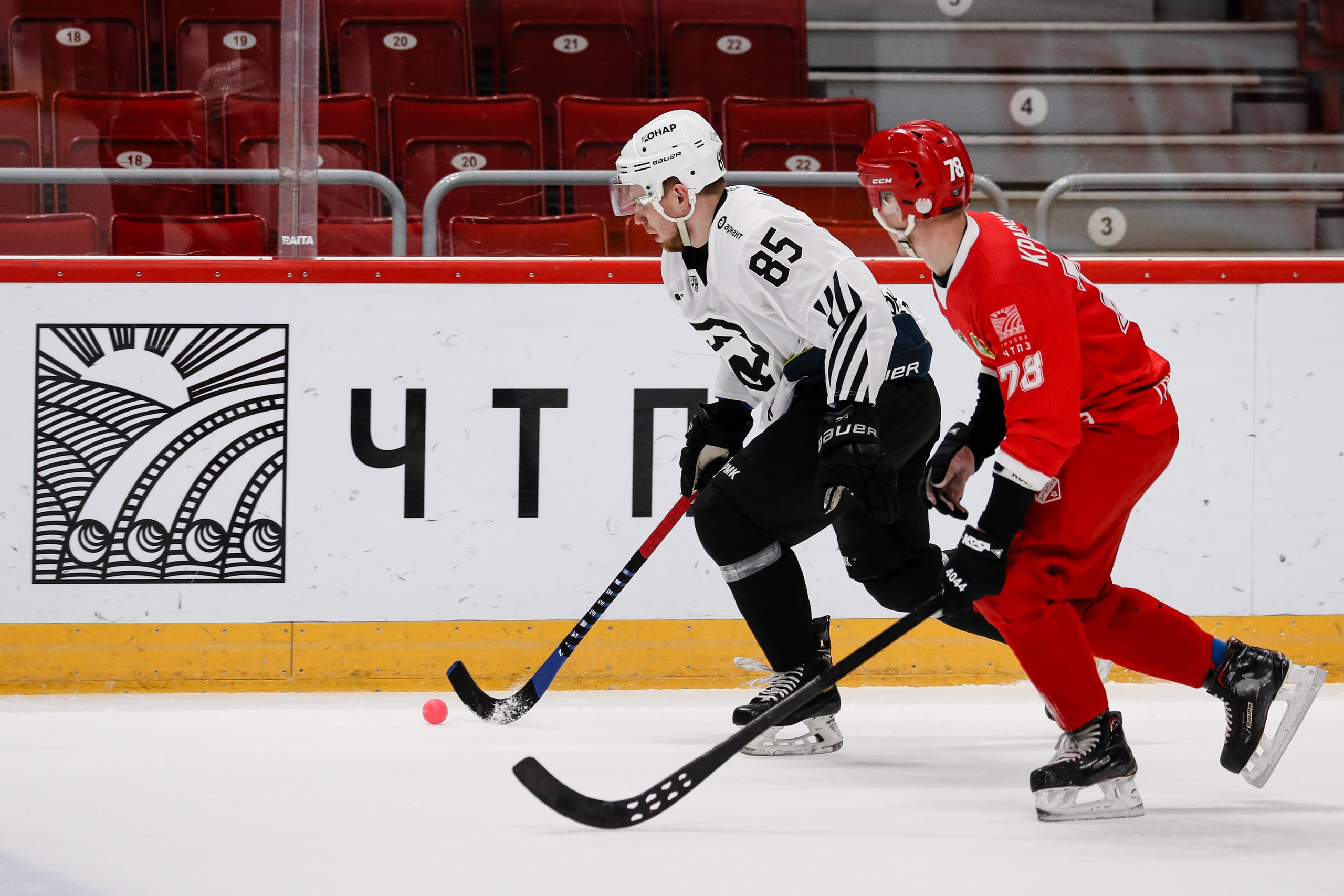 – Насколько хорошо вы знакомы с «не вашим» видом хоккея? В.О: – Практически не знаком. Видел несколько матчей сборной по телевидению, но это было достаточно давно. Е.А: – Считаю, что очень хорошо. – Что вы знали о команде соперников? В.О: – Честно говоря, ничего. Е.А: – Я слежу за матчами КХЛ, и, конечно, знаю, что «Трактор» там выступает. Что в первом раунде плей-офф челябинцы проиграли «Салавату Юлаеву». Слышал о таких хоккеистах «Трактора», как его капитан Сергей Калинин – заслуженный мастер спорта, игравший в сборной России, Вячеслав Основин, Виталий Кравцов, которого сегодня не было – вроде бы, он опять уехал в НХЛ. – Вам приходилось прежде играть в другой вид хоккея? В.О: – Да. Один-два раза в год мы играем в хоккей с мячом для эмоциональной разрядки, во время пауз в чемпионате. Но одно дело играть между собой, и совсем другое – встретиться с профессиональной командой из этого вида спорта. Мне игра «Трубника» очень понравилась. Е.А: – Были случаи, что я катался с «шайбной» клюшкой, но никогда не играл. Только перед матчем с «Трактором» мы провели несколько двусторонок на тренировках. – Кому сложнее перестроиться: шайбистам или мячистам? В.О: – Я думаю, что одинаково трудно. Всё-таки это совершенно разные виды спорта. Е.А: – Мне кажется, сегодня определённое преимущество получил «Трактор». Но дело не в клюшках, мячах и шайбах, а размерах площадки. В этом смысле, челябинцы оба периода находились в «родной стихии». А нам не хватало простора, чтобы раскатиться, и использовать такой свой козырь, как высокая скорость. Вообще же, сегодняшняя игра очень понравилась, уверен, что удовольствие получили и все наши ребята, и хоккеисты «Трактора».