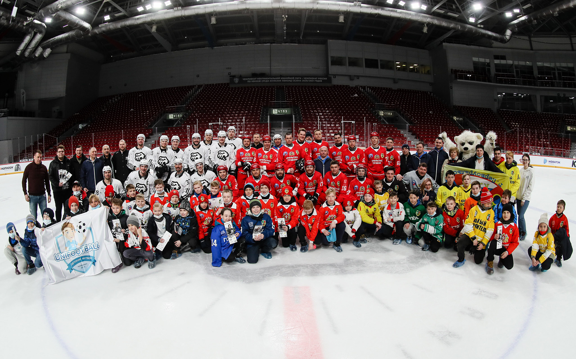 Остаётся добавить, что наблюдали за встречей юные воспитанники челябинской школы UniFootball, а также ребята из ДЮСШ и дворовых клубов Первоуральска. После финальной сирены они спустились на лёд для совместного фотографирования с участниками матча.