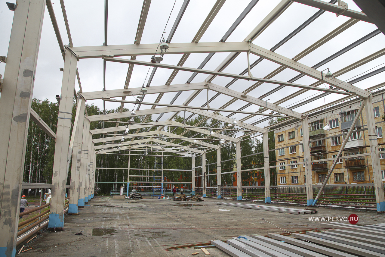 Как рассказал подрядчик, в первых числа июля рабочие приступят к монтажу стеновых панелей и заливке пола.