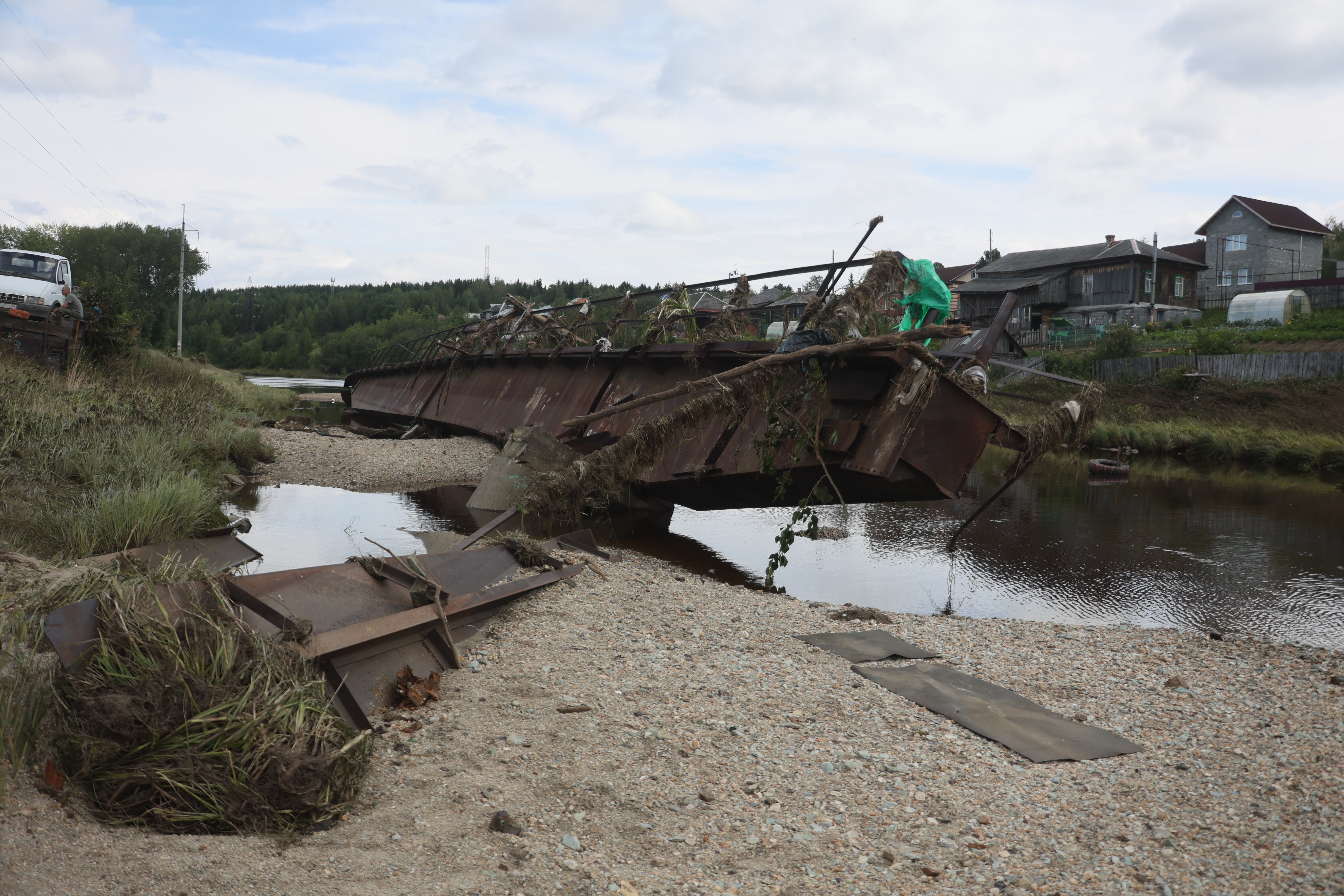 Ещё одно поручение — уделить самое серьезное внимание состоянию гидротехнических сооружений, восстановлению пострадавших дорог и мостов. На сегодняшний день все размывы в плотинах и дамбах засыпаны и укреплены, они находятся в удовлетворительном состоянии и опасности для людей в случае повтора таких обильных осадков не представляют. Практически сразу же восстановлено автодорожное движение, большая часть пешеходных мостов. Но на некоторых участках необходимо отремонтировать водопропускные трубы под дорогами. По предварительным расчётам, на эти работы требуется более 130 миллионов рублей.