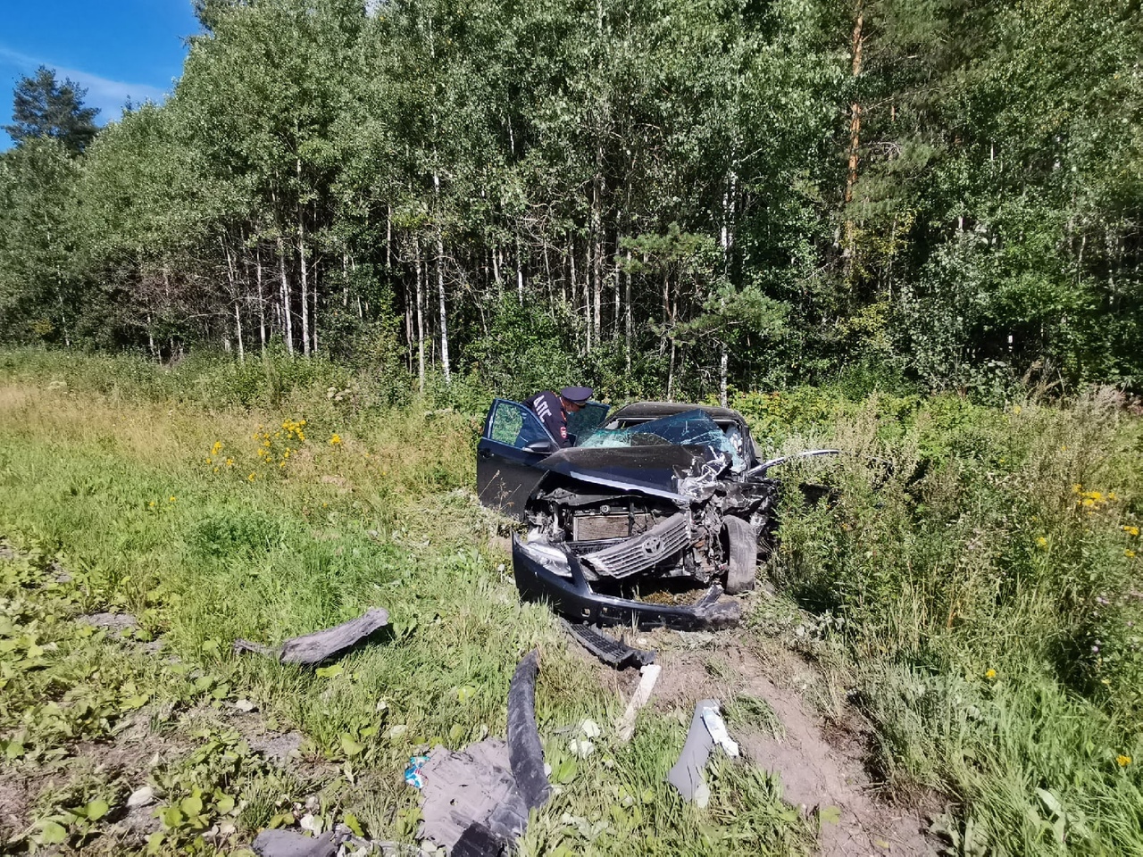 Предварительно сотрудниками ГИБДД установлено, что водитель, мужчина 1976 г.р. управляя автомобиля ГАЗ 31105, при совершении обгона, не убедился в безопасности маневра, допустил столкновение со встречным автомобилем «Тойота Камри», под управлением водителя 1985 г.р., после чего автомобиль «Тойота Камри» выехал в правый кювет.