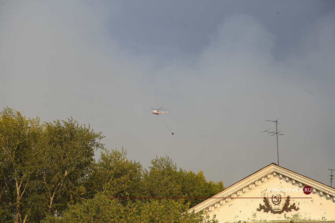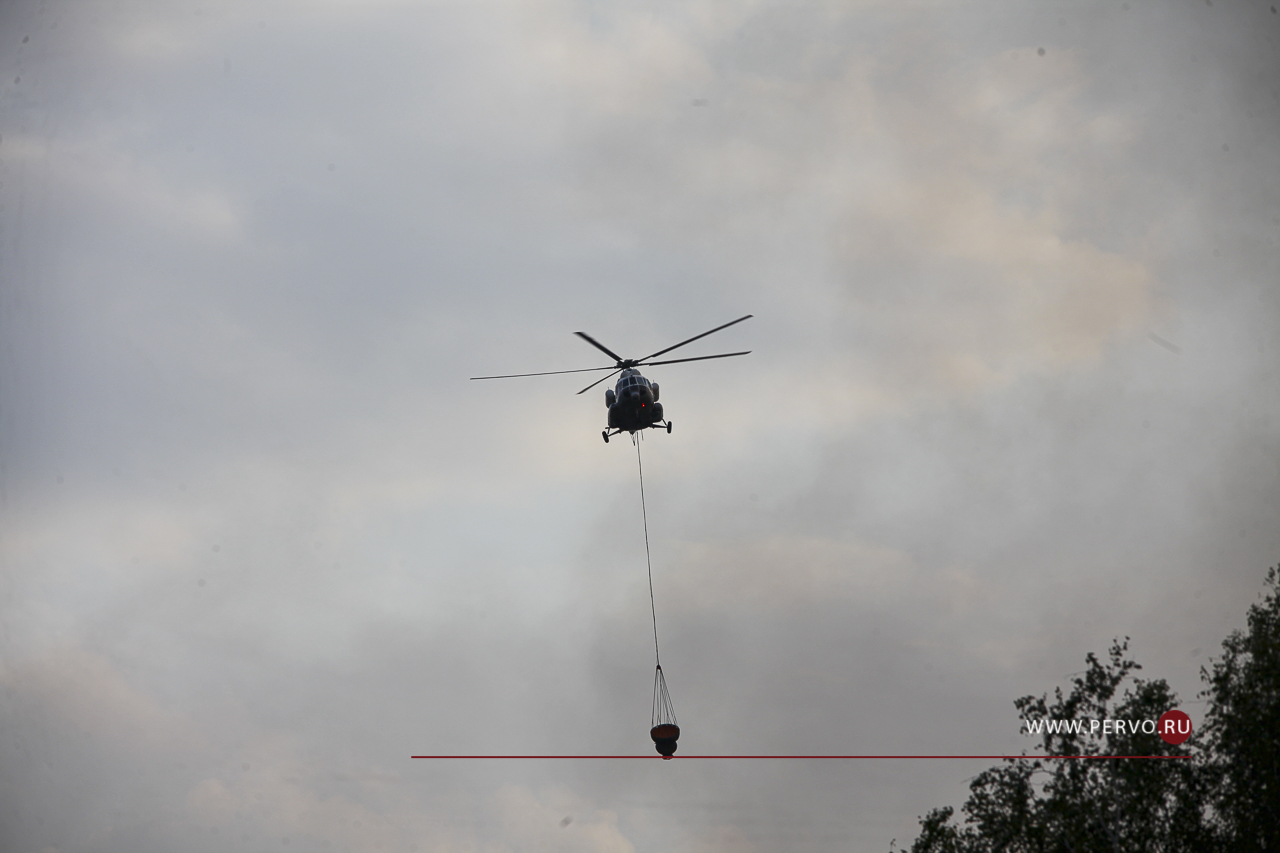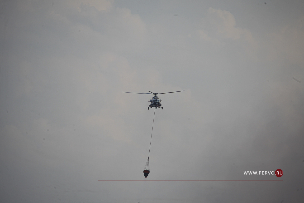 16:30 На помощь пожарным прибыл вертолёт МИ-8