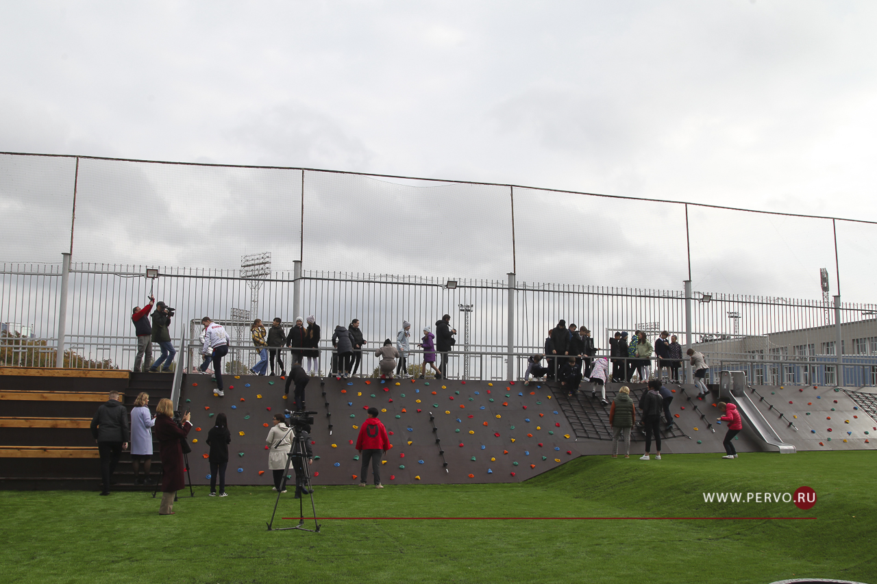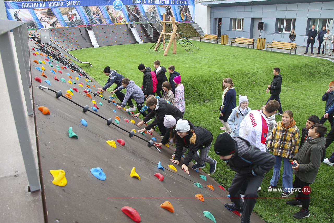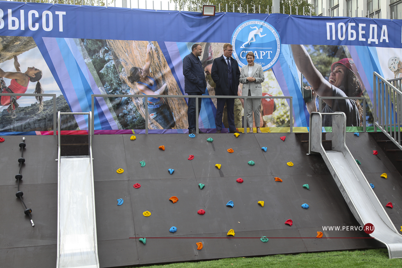 Сегодня в городе состоялось торжественное открытие нового спортивного объекта - уличного скалодрома. Он разместился между футбольным полем и Ледовым дворцом спорта.
