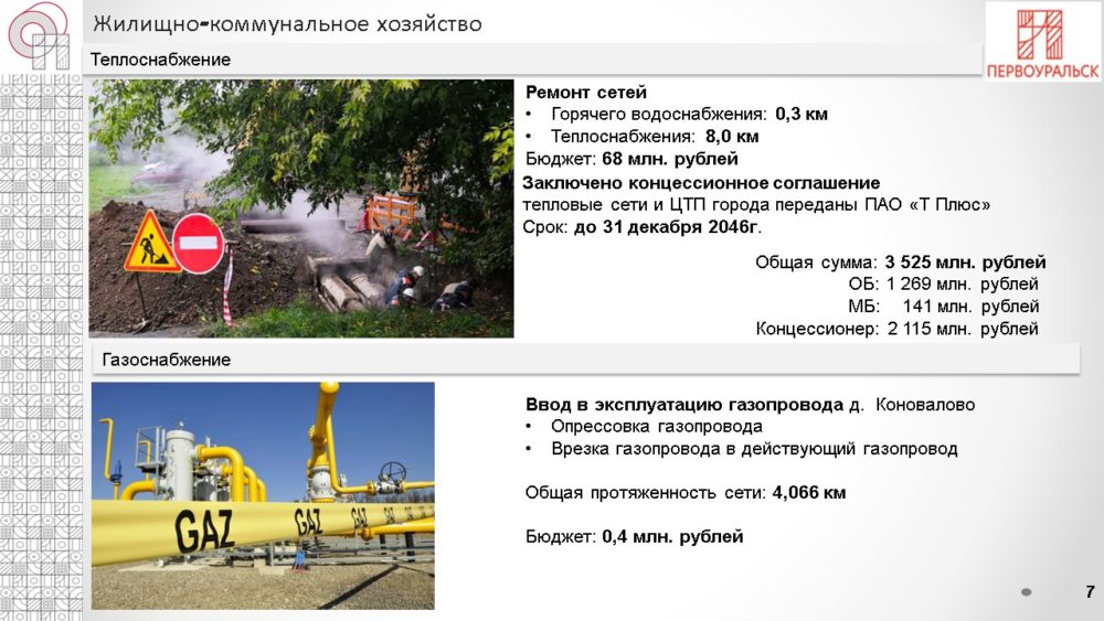 В рамках соглашения концессионер обязуется провести реконструкцию и модернизацию тепловых сетей, в том числе с восстановлением циркуляционных трубопроводов горячего водоснабжения, центральных тепловых пунктов и насосных станций, а также строительство, реконструкцию и модернизацию котельных в сельских населенных пунктах. Стоимость всех мероприятий составит 3,5 млрд рублей.