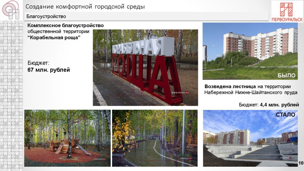 Одним из важных направлений деятельности Администрации является создание наиболее удобной, качественной, комфортной и современной среды для жизни граждан. В 2021 году в рамках реализации национального проекта “Жилье и городская среда” выполнено комплексное благоустройство общественной территории “Корабельная роща”.