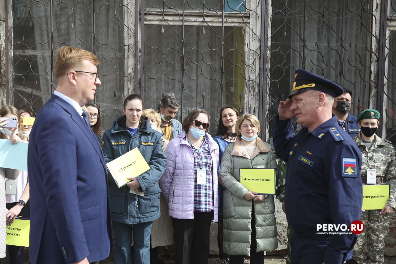 Первым делом капитаны команд доложили военному комиссару Первоуральска и Шалинского района Свердловской области Евгению Викторовичу Наумову о своей готовности. Затем ребят поприветствал Глава городского округа Игорь Валерьевич Кабец.