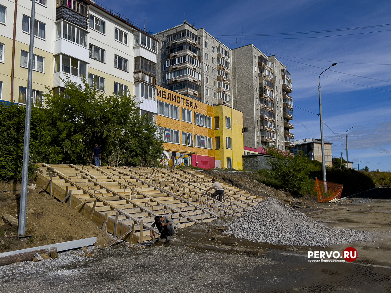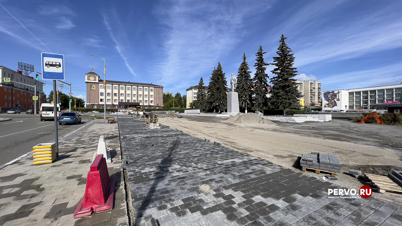 в Первоуральске приступили к реконструкции центральной площади Победы. Рабочие уже закончили монтаж гранитных плит у основания памятника вождю пролетариата В.И. Ленина. Также проходят работы по укладке силовых кабелей и установки нового бордюрного камня. Продолжаются работы по укладке тротуарной плитки. Рабочие делают опалубку для лестничных спусков.