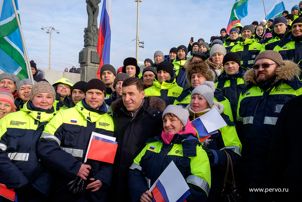 Делегация Первоуральска оказалась представительной. Более З00 человек – работники Новотрубного завода, «ДИНУРа», спортсмены, члены местного отделения «ЕДИНОЙ РОССИИ». Команда Первоуральска была не только многочисленной, но и заметной. Мы приехали в ярких заводских спецовках, чтобы показать: трудовой Урал вместе со всеми россиянами готов отстаивать позицию страны. Готов бороться за справедливость, за равноправное и доброе отношение между всеми народами.