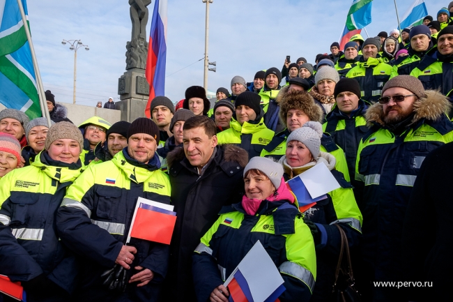 К нам подошел губернатор Евгений Куйвашев. По всему было видно, что он очень рад появлению первоуральцев. Тепло поблагодарил за поддержку. Отметил, как важна сегодня гражданская позиция каждого. На митинг собрались неравнодушные люди, им небезразлично будущее страны, своего края или города. 18 марта они также ответственно подойдут к выбору Президента России.