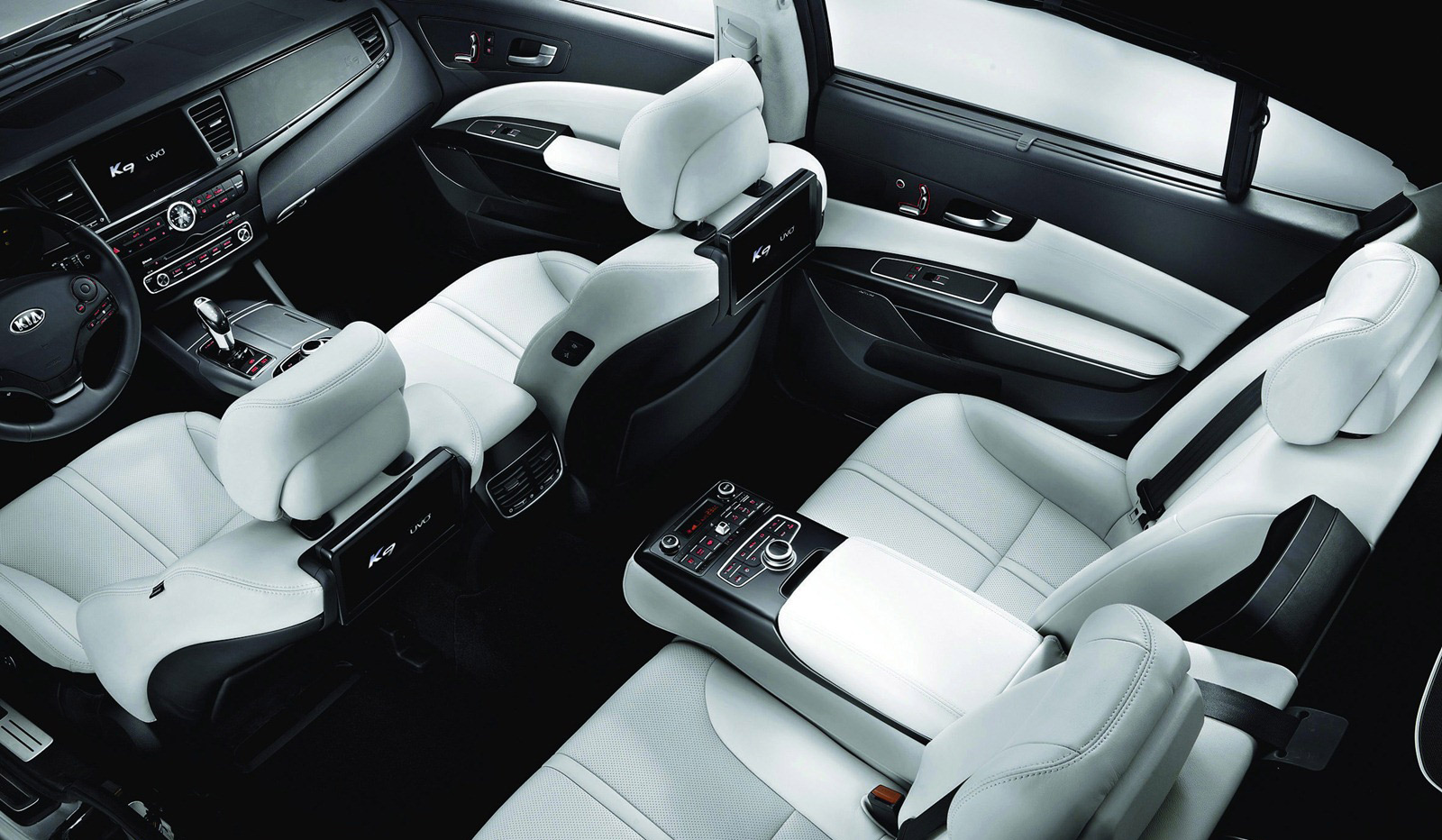 Длина Kia K9 составляет 5090 мм (пока представлена только одна модификация, но не исключено, что позже появится и удлиненная версия). Двигателя пока два. Базовый объемом 3,3 л выдает 300 л.с., а 3,8-литровый агрегат имеет уже 333 л.с. Оба они трудятся исключительно с «автоматом», причем восьмиступенчатым. Ну а комфорт пассажиров будет обеспечивать пневматическая подвеска, которая станет входить в базовую комплектацию. Плюс к этому имеются такие «навороты» как «умный» круиз-контроль, который сам следит за дистанцией до впередиидущего автомобиля, большой дисплей с диагональю 12,3 дюйма, два монитора для задних пассажиров, система кругового видеообзора, система проецирования изображения навигационной системы на лобовое стекло и так далее.