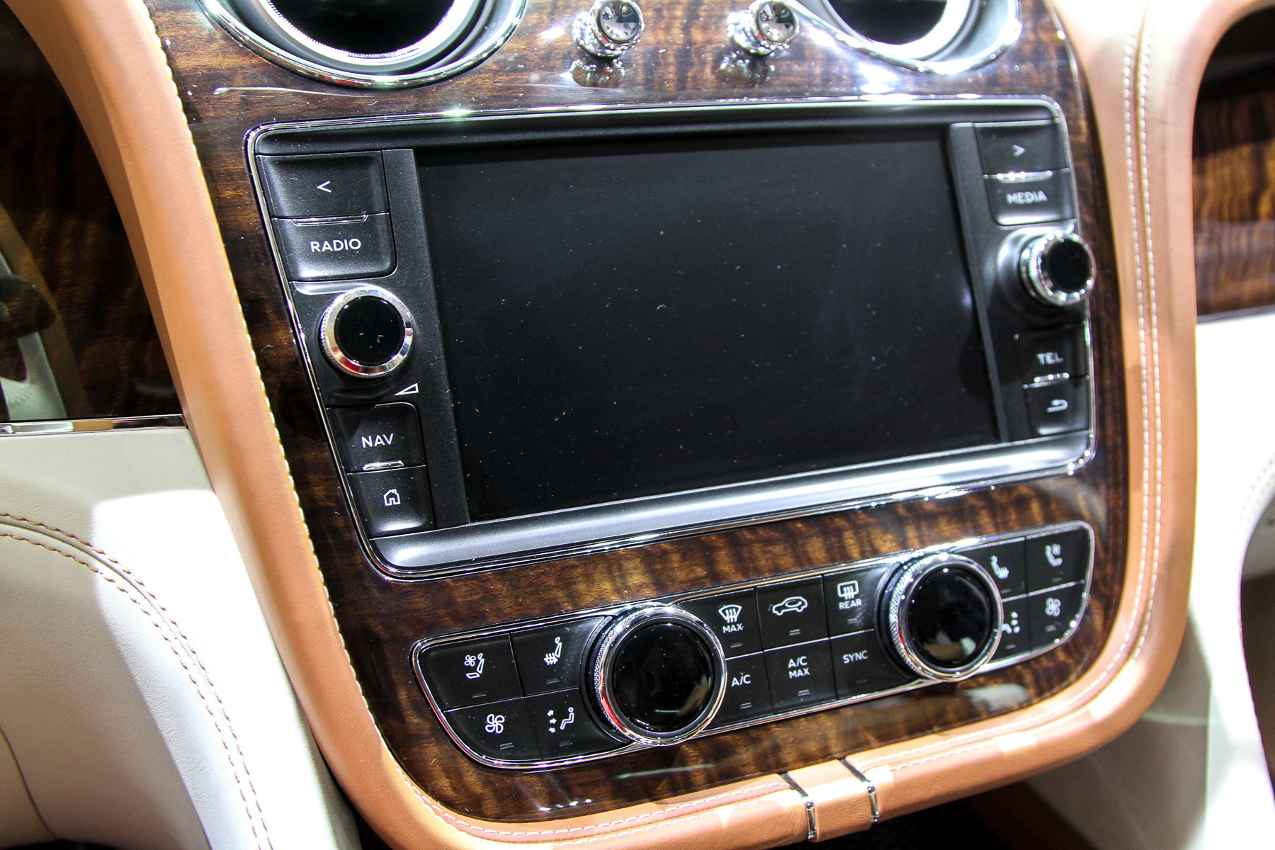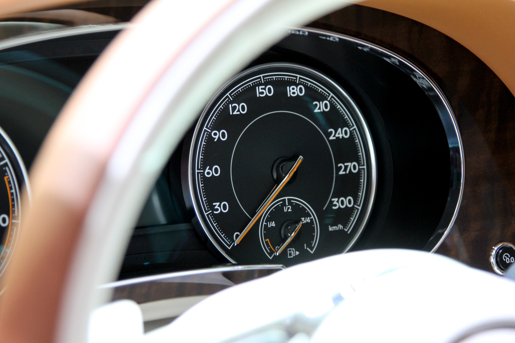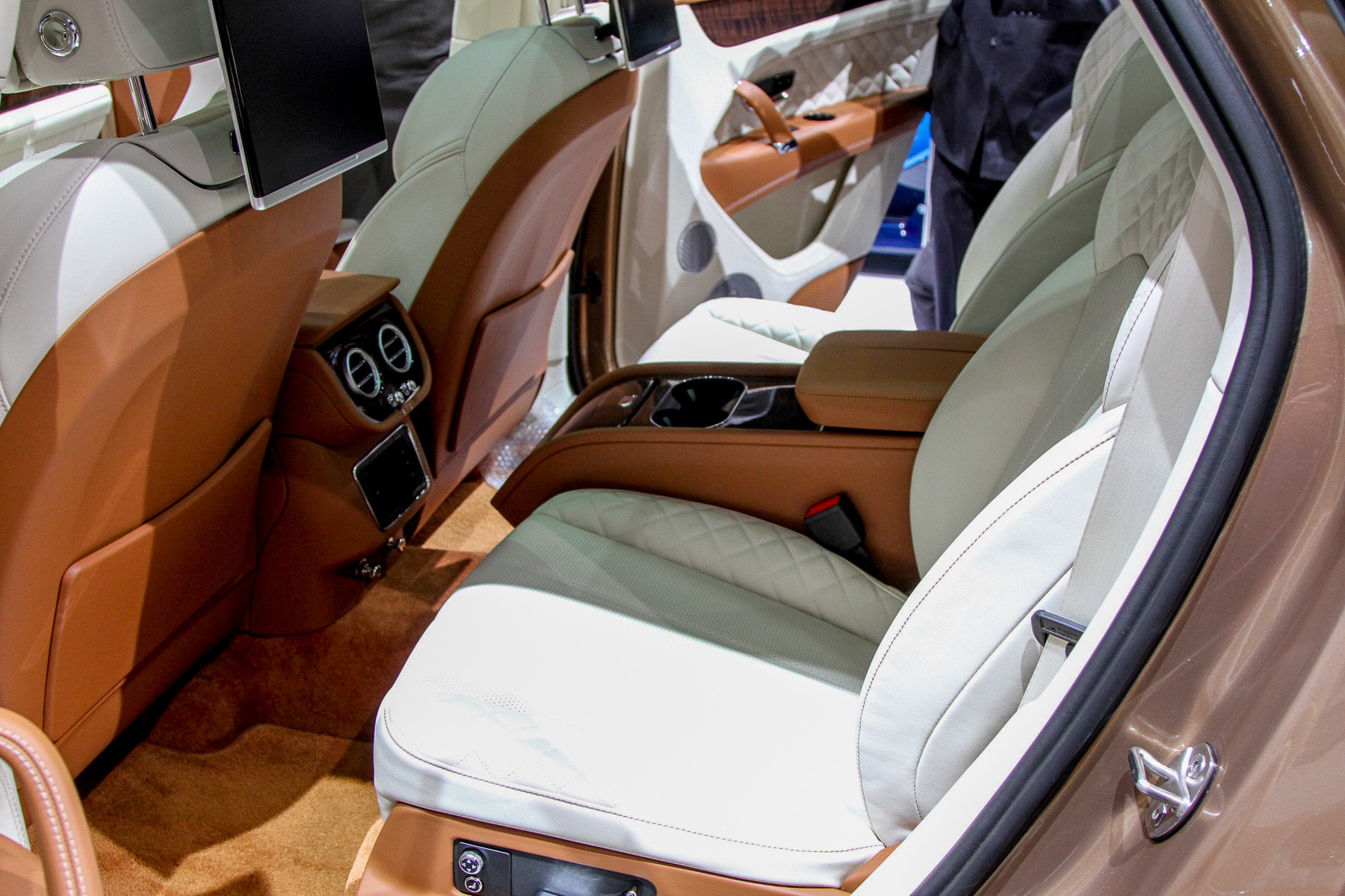 Да, здесь весь багажник занят набором для пикника с шампанским и чайным сервизом, задние раздельные кресла (может быть и сплошной ряд) — с полным набором электрорегулировок, неприкрытого пластика почти нет: кругом дерево и кожа, которой обёрнуты даже нижние части дверей. В общем, обстановка консервативного английского кабинета. Но тот же длиннобазный Range Rover может быть отделан ничуть не хуже! К тому же у «Бентайги» кое-где торчат аудюшные «уши» — унифицированные кнопки, рычажки, мультимедиа... Большинство клиентов этого даже не заметит, но если вы вдруг решите поменять свой Q7 на Bentley... Может быть, вращающиеся часы компенсируют? Забавная, кстати, штука.