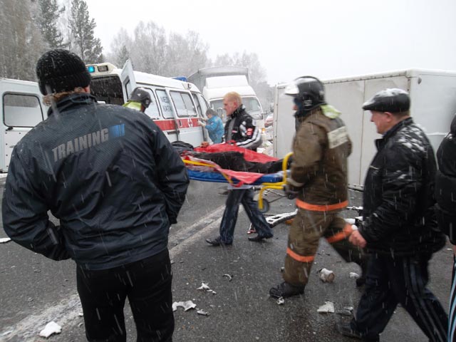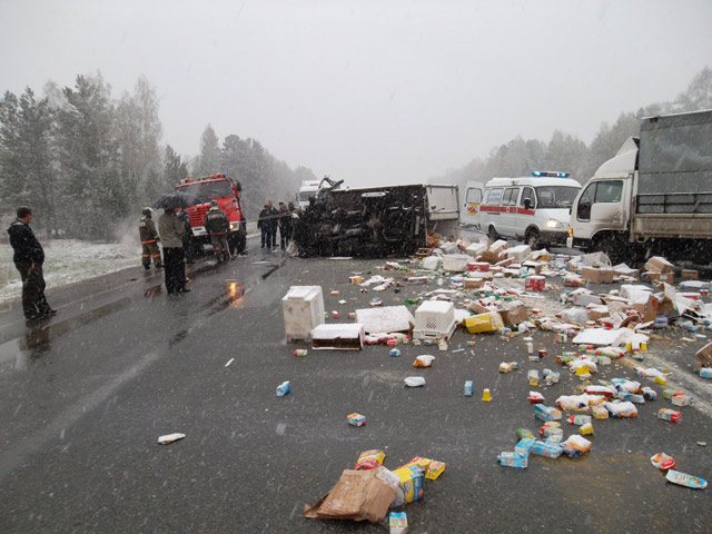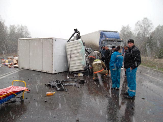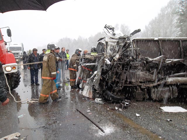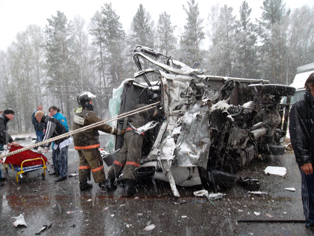 В то же время Life News со ссылкой на Сибирский региональный центр МЧС пишет, что "у иномарки заклинило рулевое управление", из-за чего она и выехала на полосу встречного движения.