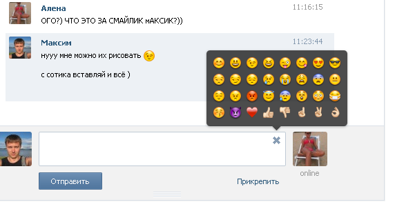 В личных сообщениях в соцсети «В Контакте» теперь можно ставить стандартные смайлы Emoji. В правом верхнем углу диалогов «В Контакте» появилась иконка, при нажатии на которую пользователь видит список всех доступных смайлов. «В Контакте» первой перенесла стандартные смайлы Emoji из мобильных клиентов в браузерную версию, отметил основатель соцсети Павел Дуров в посте на своей странице.