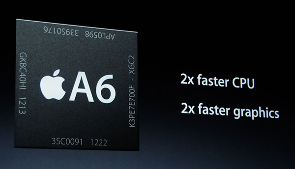 Во время запуска смартфона iPhone 5 компания Apple, по привычке, не сообщила никаких деталей относительно нового процессора A6, хотя заявила о повышении производительности вдвое в области графики и CPU по отношению к A5, отметив также улучшенное энергопотребление нового чипа и уменьшенную на 22% площадь. Практически без сомнения можно сказать, что используется 32-нм техпроцесс Samsung, как и в новой ревизии чипа A5, встречающегося в некоторых iPad 2.