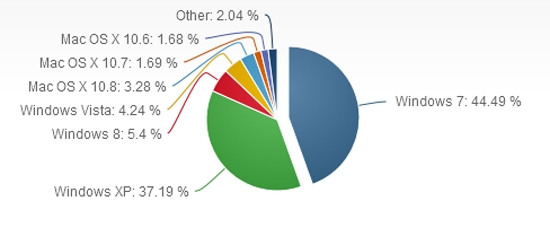 По данным Netmarketshare, в течение июля флагманская операционная система Windows 8 корпорации Microsoft увеличила долю на рынке персональных компьютеров с 5,1 до 5,4%. В то же время платформа Windows 7 за месяц укрепила позиции с 44,4 до 44,5%: сейчас она является самой распространённой ОС для десктопов и ноутбуков. Год назад доля Windows 7 равнялась 42,2%.