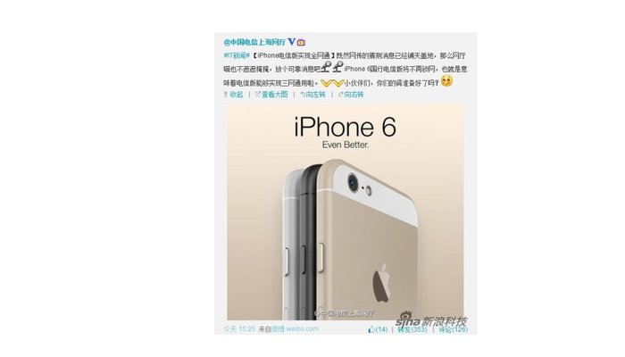 Крупнейший китайский оператор связи China Telecom в социальной сети Weibo рассказал о характеристиках iPhone 6, а также об условиях, на которых смартфон будет продаваться на территории КНР, сообщает Forbes.