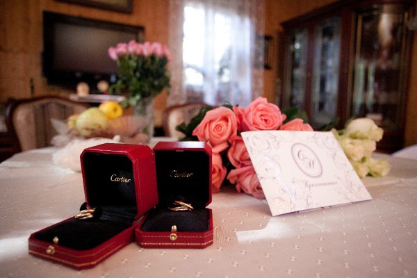Счастливая невеста не стала хвастаться банкетным столом с яствами из китайской и японской кухни, но зато выложила фото, на котором жених в порыве страсти зубами срывает с ее ноги подвязку. Также точно известна культурная программа - для гостей офицера ФСБ выступали популярные звезды КВН. Были предъявлены и кольца молодоженов с бриллиантами