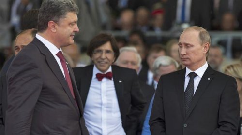 Президент России Владимир Путин после встречи с лидерами западных стран в Париже в день 70-летней годовщины высадки союзников в Нормандии и краткого общения с недавно избранным лидером Украины Петром Порошенко одобрил выбор украинского народа и тем самым успокоил Запад, который настойчиво просил его признать нового лидера Украины и начать с ним сотрудничать. Также президент РФ высказался по поводу урегулирования украинского кризиса, заявив, что Россия не является стороной конфликта.