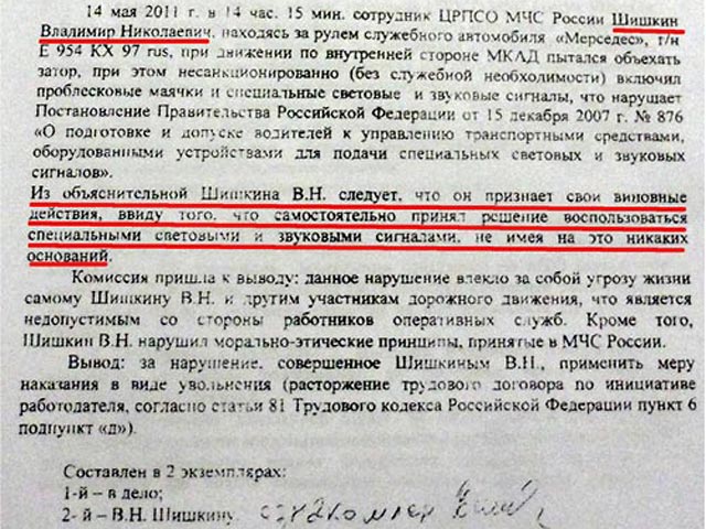 Кроме того, в блоге журналиста Андрея Мальгина опубликованы приказ и акт, датированные 16 мая - то есть тем днем, когда якобы уволенного Шишкина сфотографировали последний раз за рулем служебного автомобиля. Объяснительная также датирована 16 мая.