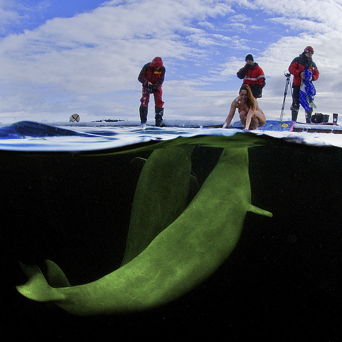 В Рунете получили популярность фотографии российской чемпионки по фридайвингу Натальи Авсеенко, которая в Арктике разделась догола и нырнула в прорубь, чтобы в воде с температурой минус 1,5 градуса Цельсия (температура соленой воды может опускаться ниже нуля) искупаться в обществе двух белух.