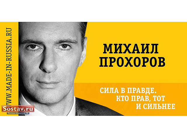 В штабе "Правого дела" отмечают, что "нужно знакомить страну с Прохоровым, поскольку опросы по стране пока говорят о его невысокой узнаваемости". Для знакомства будет использоваться наружная реклама, в частности билборды, сообщает РБК.