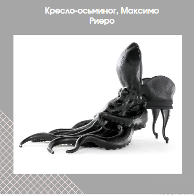 Давайте рассмотрим поближе один из самых необычных предметов коллекции - Octopus Armchair. Благодаря своей поразительно сложной композиции и уникальному архитектурному стилю, в модели причудливым образом сочетаются пугающие щупальца мебели и поразительная элегантность.