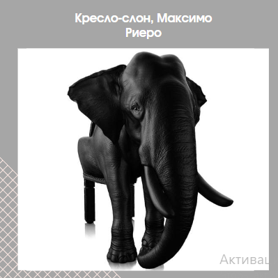 Смелая коллекция испанского художника Максимо Риера представляет собой скульптурную композицию из пяти кресел, изображающих гигантских животных. Мебель выполнена в форме слона, осьминога, носорога, моржа и кита.