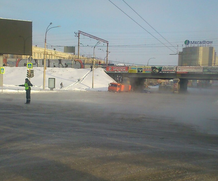 – Прорыв произошёл на участке дороги под мостом на улице Малышева. Сообщалось, что холодная вода бежит со стороны Гагарина в сторону Восточной, на проезжую часть улицы Малышева. Для устранения аварии на место прибыли бригады МУП "Водоканал". Спецтехникой с проезжей части счищается снег, лёд и вода, – рассказали в ГИБДД Екатеринбурга.