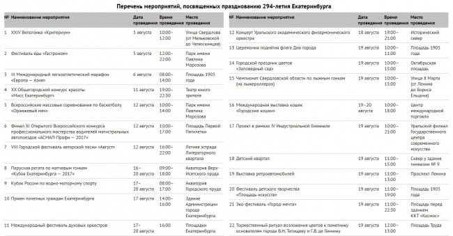 Сити-менеджер Екатеринбурга Александр Якоб подписал постановление «О праздновании Дня города Екатеринбурга в 2017 году». Мероприятия будут проходить с 5 по 23 августа, основные пройдут 19 августа, сообщают в пресс-службе мэрии.