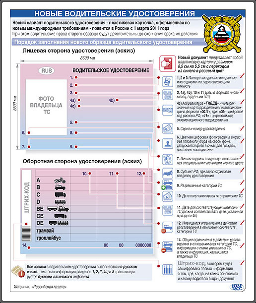 Отметим, что новые права по своим размерам похожи на пластиковые удостоверения, печатавшиеся на оборудовании УОМЗ и известные как удостоверения «полароид». Сам бланк окрашен в розовато-голубоватый цвет и имеет штрих-код. В будущем все автомобили ДПС будут оборудованы сканерами, благодаря которому и штрих-коду удостоверения инспектор будет в режиме он-лайн получать всю информацию о водителе — его категориях и сроках их действия, имеющихся нарушениях.