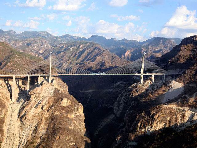 На западе Мексики в минувший четверг открыт самый высокий в мире подвесной мост El Puente Baluarte на автодороге между штатами Дуранго и Синалоа. В торжественной церемонии открытия принял участие президент страны Фелипе Кальдерон.