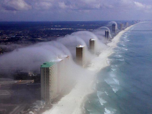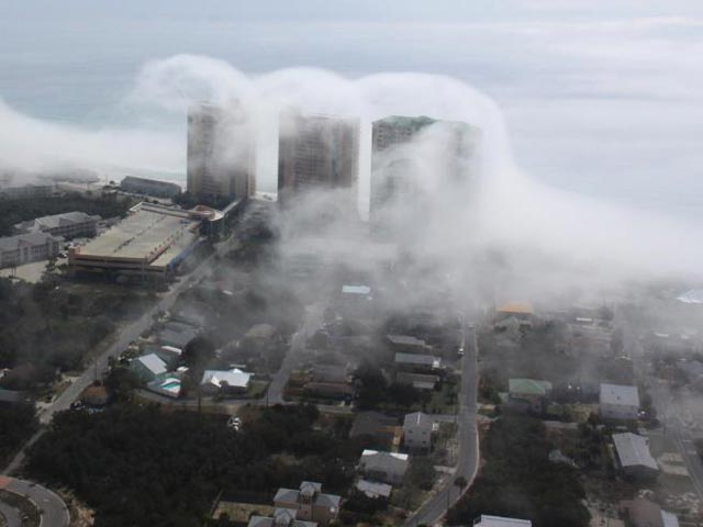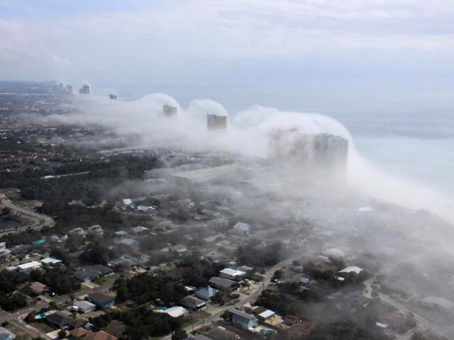 Фотографии были сделаны местным жителем Джеар Хоттом, который зарабатывает на жизнь, катая туристов на вертолете над городом и Мексиканским заливом. По словам летчика, такой туман над пляжами Панама-Сити - не очень большая редкость, но только в минувшее воскресенье он отважился пренебречь техникой безопасности и поднять вертолет в воздух, чтобы сфотографировать "цунами".