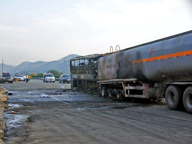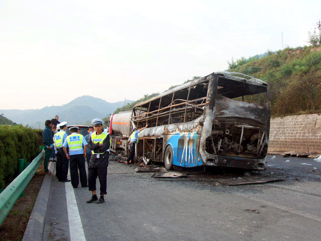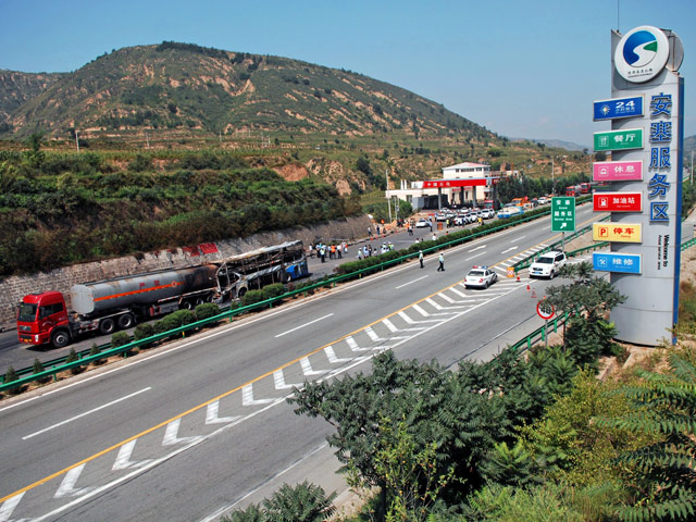 Катастрофа произошла в провинции Шэньси в 2 часа ночи по местному времени на территории города Яньань на участке скоростной автострады Баотоу-Маомин. После столкновения двухэтажного пассажирского автобуса с автоцистерной, перевозившей метанол, произошло их возгорание.