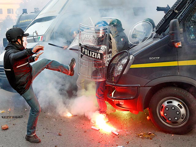 РИА "Новости" со ссылкой на Corriere della Sera рассказывает о развитии событий. В субботу вечером началась манифестация против строительства скоростной железной дороги Турин - Лион (TAV).