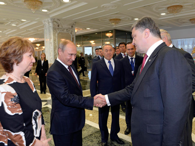 Как передает РИА "Новости", встреча президентов России, Украины, Белоруссии, Казахстана и представителей Европейского союза проходит во дворце Независимости в белорусской столице. Отметим, что украинский лидер Петр Порошенко и Владимир Путин пожали друг другу руки. Президент РФ назвал встречу в Минске "хорошей возможностью для обсуждения отношений Украины с ЕС и Таможенным союзом".