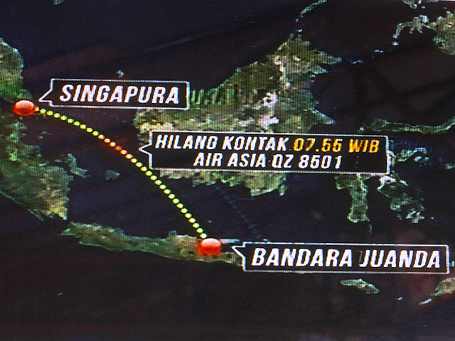 Airbus A320 компании AirAsia пропал с экранов радаров утром 28 декабря. В последний раз экипаж выходил на связь в районе острова Белитунг. Пилот запрашивал у диспетчера данные о маршруте в 06:17 по местному времени (02:17 мск), находясь около острова Белитунг. По расписанию рейс должен был приземлиться в Сингапуре примерно через час. На борту находились 155 индонезийцев, трое граждан Южной Кореи, один подданный Великобритании, один гражданин Малайзии, один сингапурец и один француз.